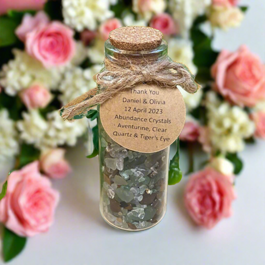 Personalized Crystal-Filled Jar Bonbonniere – Elegant Wedding Favors with Custom Tags