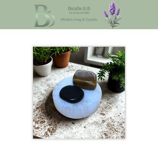 Protect & Ground Crystal Set – Selenite Plate, Black Obsidian and Tiger’s Eye