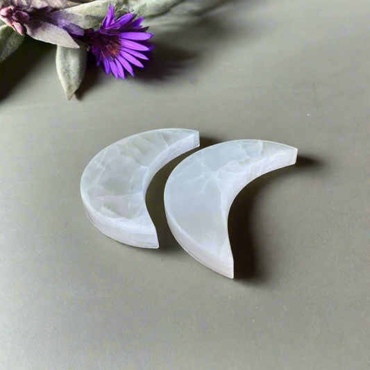 10cm Selenite Crescent Moon Charging Plate – Serenity, Energy Cleansing, and Crystal Charging
