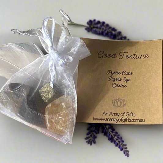 Good Fortune Tumbled Stone Kit | Pyrite, Tiger's Eye, Citrine | Manifest Abundance & Prosperity | Healing Crystals for Luck and Success