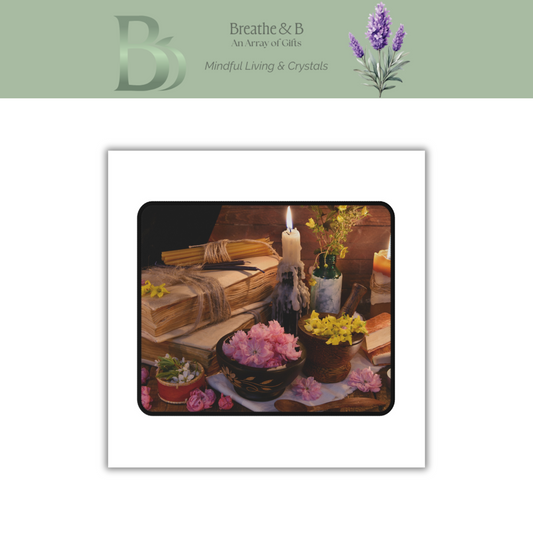Candlight & Blooms Mouse Pad | Candle, Book & Floral Design | Whimsical Desk Decor | Mindful Workspace Gift