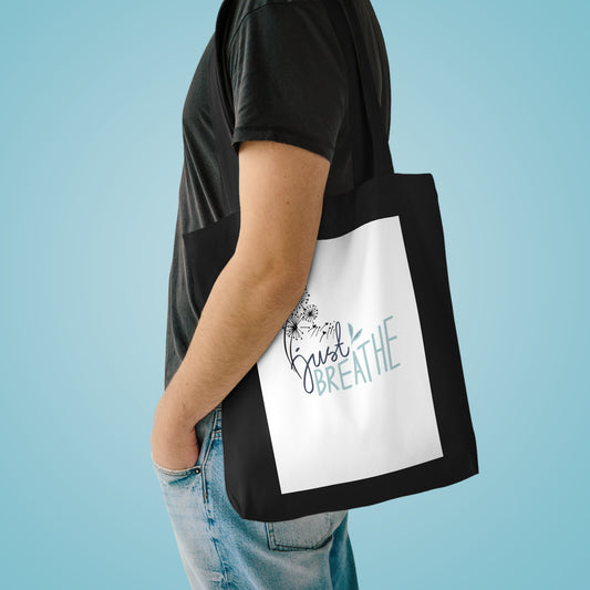 Just Breathe Cotton Tote Bag | Eco-Friendly Mindful Shopping Bag | Reusable Canvas Tote for Yoga, Beach, Groceries, or Everyday Use